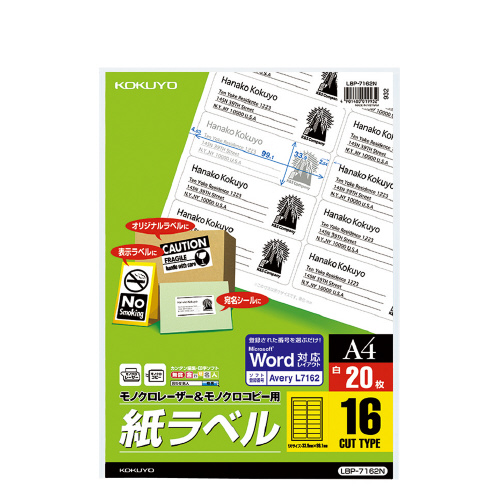 モノクロレーザー用紙ラベル A4 20枚入 16面カット