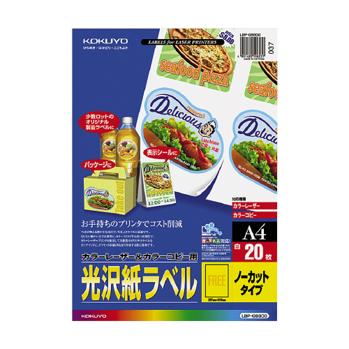カラーLBP&コピー用光沢紙ラベル A4 20枚入 ノーカット