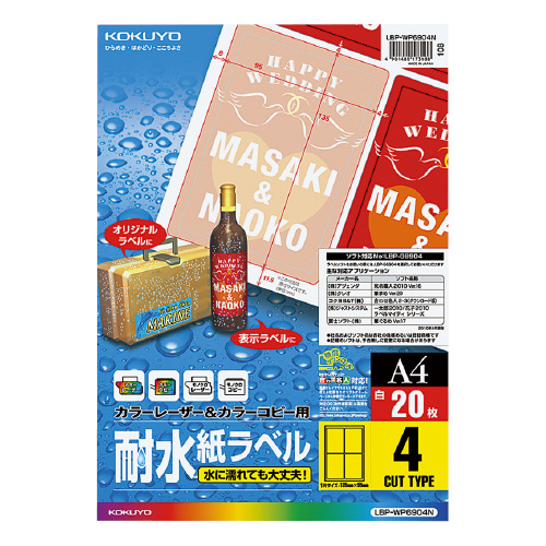 カラーLBP&コピー用耐水紙ラベル A4 20枚入 4面カット