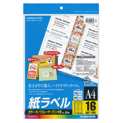 LBP用紙ラベル カラー&モノクロ対応 A4 20枚入 16面カット