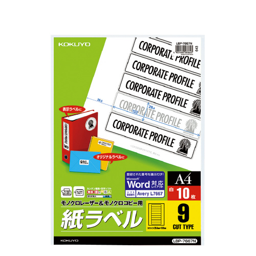 モノクロレーザー用紙ラベル A4 10枚入 9面カット