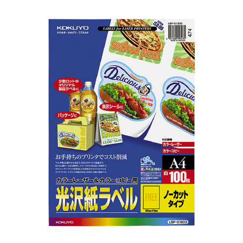 カラーLBP&コピー用光沢紙ラベル A4 100枚入 ノーカット