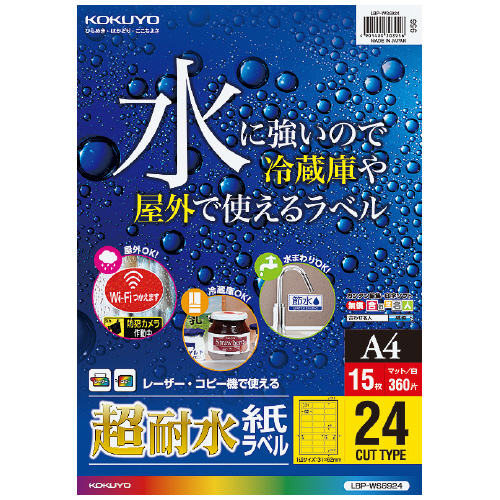 カラーLBP用 超耐水紙ラベル A4 15枚入 24面カット