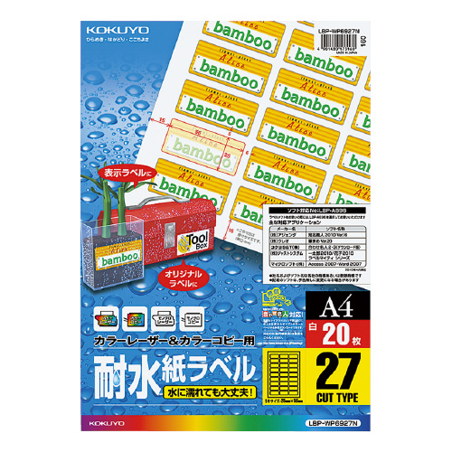 カラーLBP&コピー用耐水紙ラベル A4 20枚入 27面カット