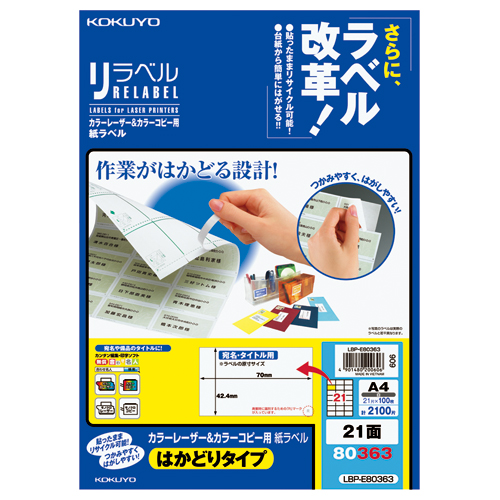 カラーLBP&コピー用ラベル リラベル 21面 100枚入