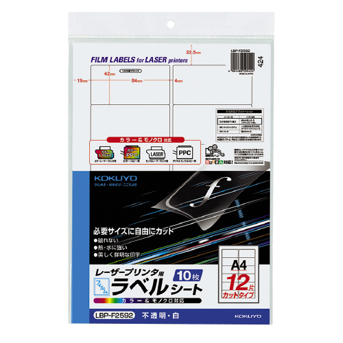 カラーLBP&コピー用フィルムラベル 10枚入 12面カット 不透明 白