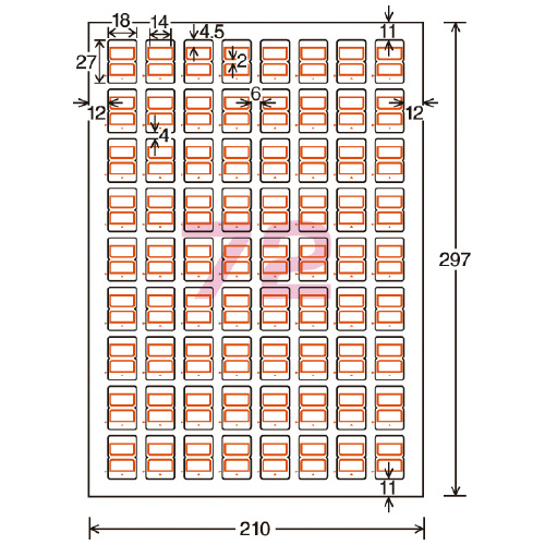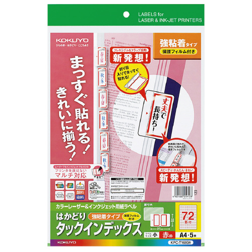 LBP&IJP用タックインデックス 保護フィルム付 A4 72面 5枚 赤枠