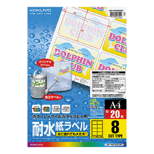 カラーLBP&コピー用耐水紙ラベル A4 20枚入 8面カット