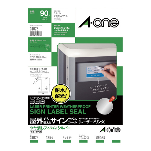 屋外でも使えるサインラベルシール シルバーツヤ消しフィルム 18面 5枚
