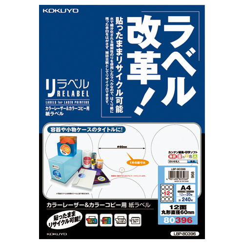 LBP&PPC用紙ラベル<リラベル> 12面丸型 20枚