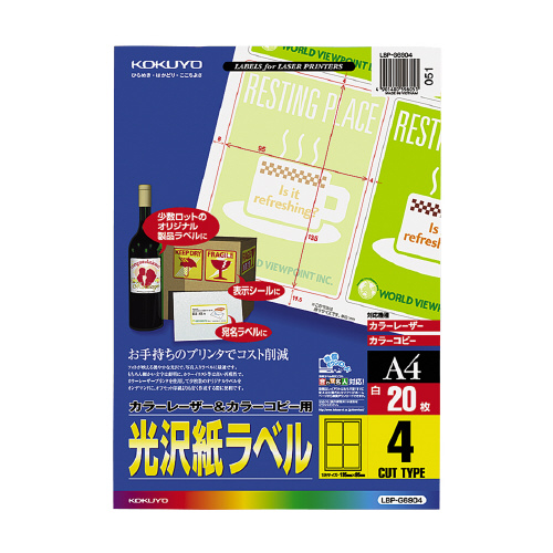 カラーLBP&コピー用光沢紙ラベル A4 20枚入 4面カット