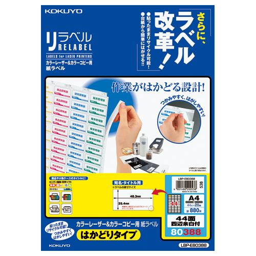 カラーLBP&コピー用ラベル リラベル 44面四辺余白付 20枚入