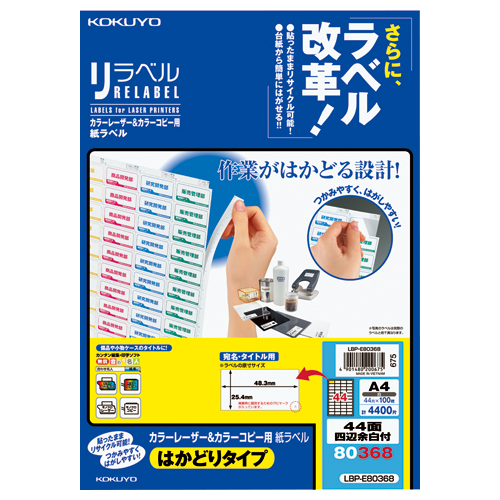 カラーLBP&コピー用ラベル リラベル 44面四辺余白付 100枚入