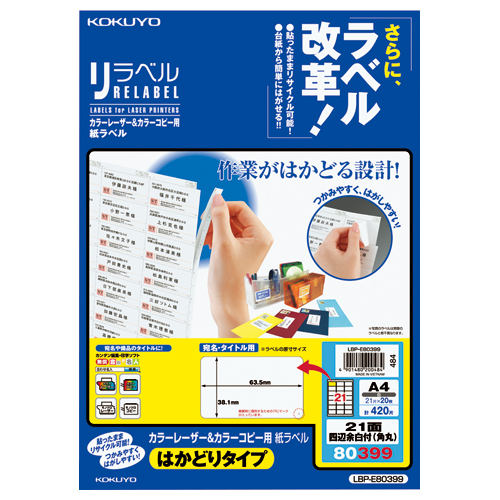 カラーLBP&コピー用ラベル リラベル 21面四辺余白付(角丸) 20枚入