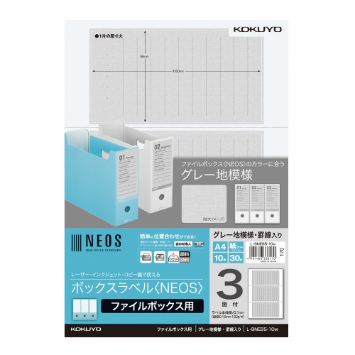 ボックスラベル<NEOS> ファイルボックス用A4グレー3面10枚