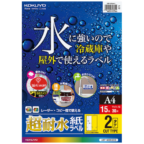 カラーLBP用 超耐水紙ラベル A4 15枚入 2面カット LBP-WS6903