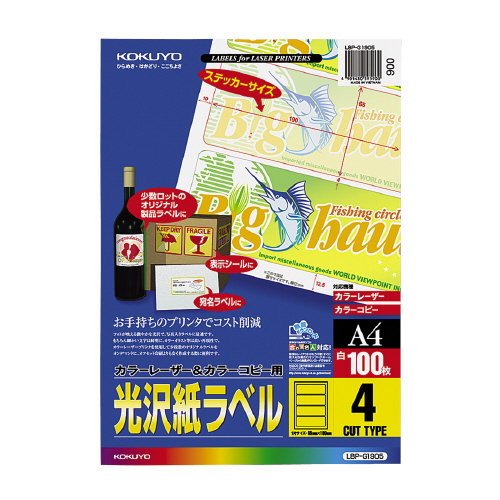 カラーLBP&コピー用光沢紙ラベル A4 100枚入 4面カット LBP-G1905