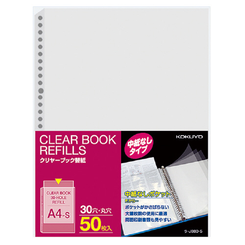 クリヤーブック替紙(中紙なし) A4縦 2・4・30穴 50枚入り ラ-J880-5
