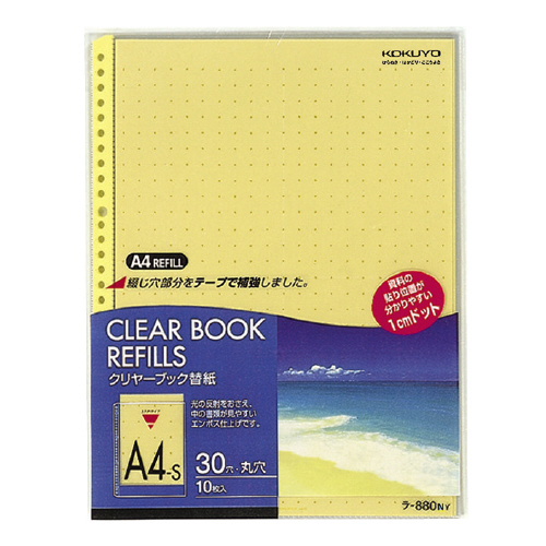 クリヤーブック替紙 A4縦 30穴 台紙色黄 10枚入 ラ-880NY