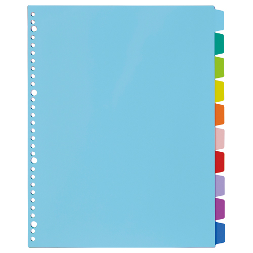 ●サイズ/297×230(+12)mm ●1組/10山:10色10山見出し ●穴数/2・4・30穴 ●再生PP ※サイズ内の( )は山高さを表します。