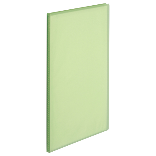 ●固定式 ●PP表紙(透明タイプ) ●サイズ/310×230×10mm ●ポケット/20枚 ●中紙なし ●エンボス仕上げポケット ●再生PP ●A4タテ ●色/ライトグリーン