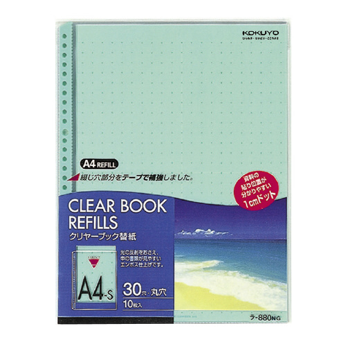 クリヤーブック替紙 A4縦 30穴 台紙色緑 10枚入 ラ-880NG
