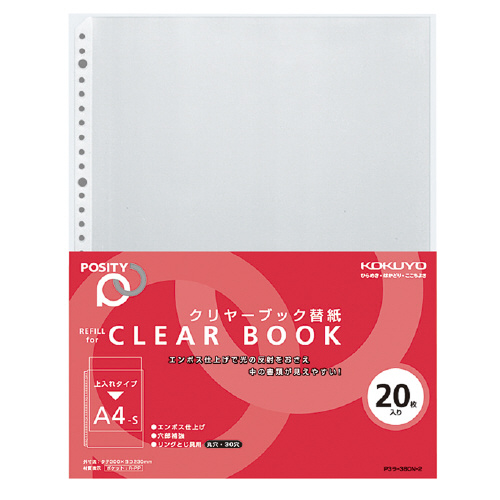 クリヤーブック替紙<POSITY> 中紙無し A4縦 30穴 20枚入 P3ラ-380N-2