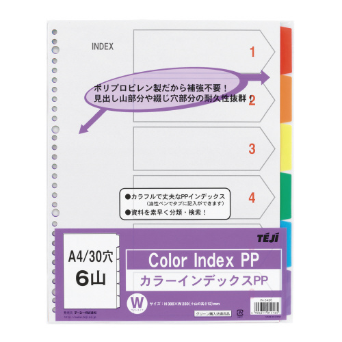 カラーインデックス PP 多穴 A4 30穴 6山 IN-3406