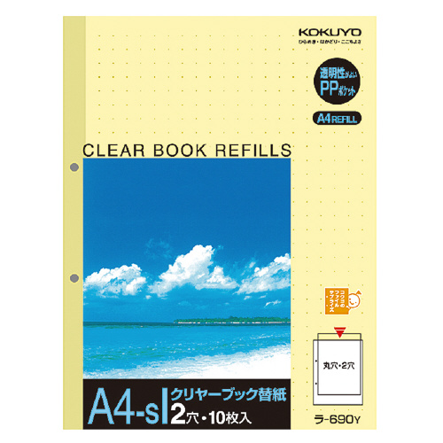 クリヤーブック替紙(2穴とじ) A4縦 2穴 台紙色黄 10枚入 ラ-690Y