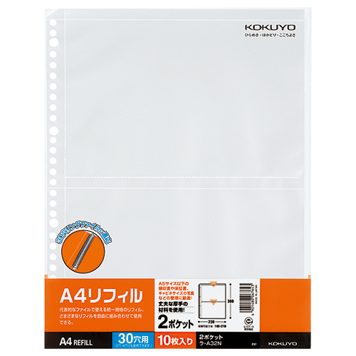 A4リフィル 2ポケット A4縦 30穴 10枚入 ラ-A32N
