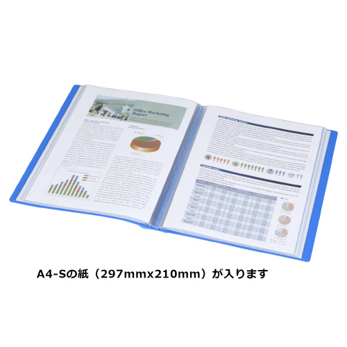 クリヤーブック A4縦 固定式60枚ポケット 青 ラ-B60B