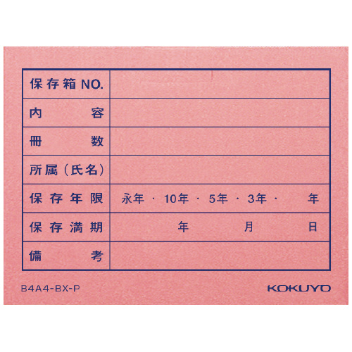 文書保存箱(カラー・フォルダー用) ピンク B4A4-BX-P